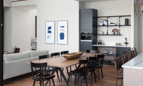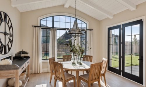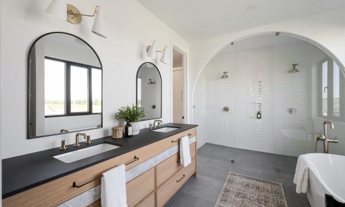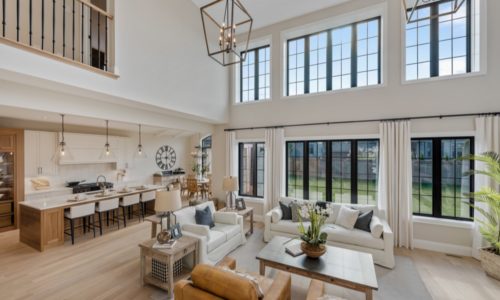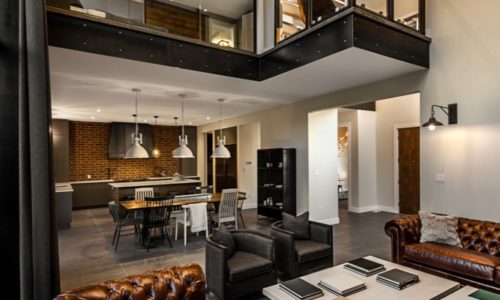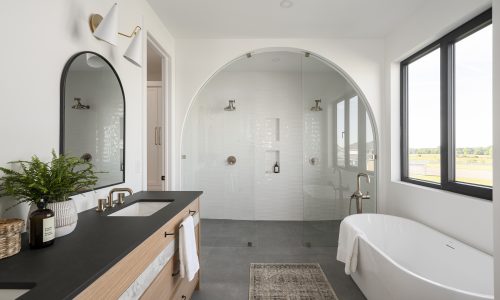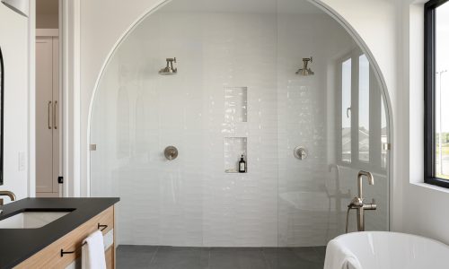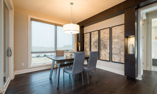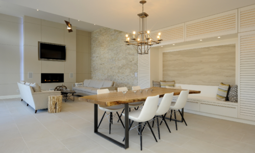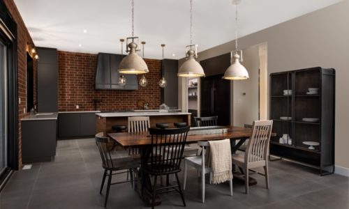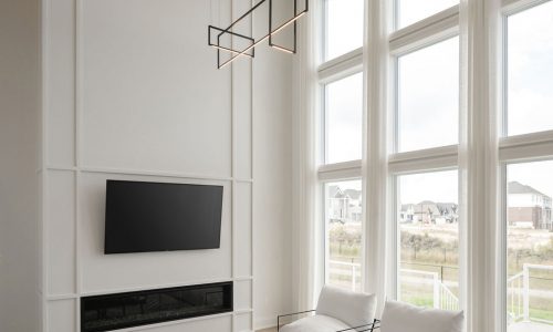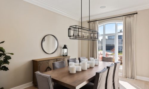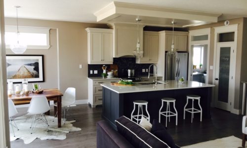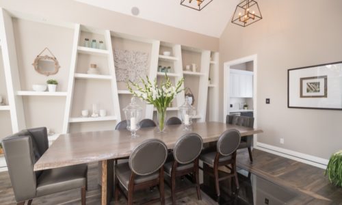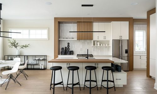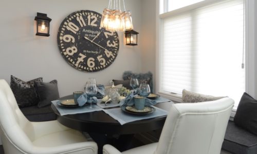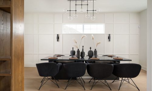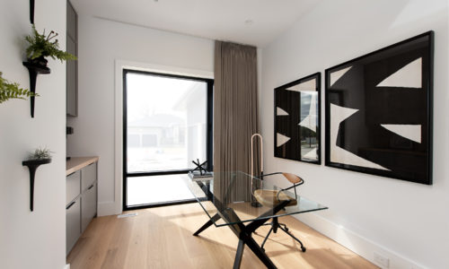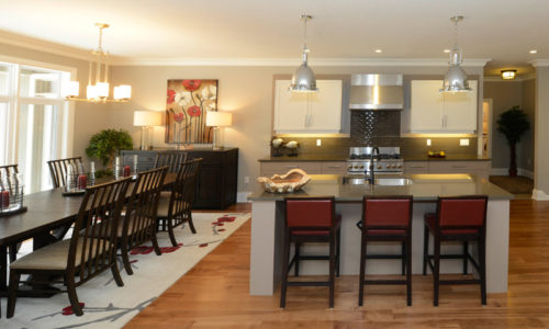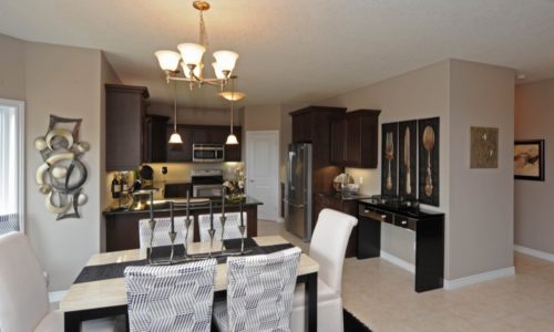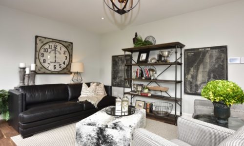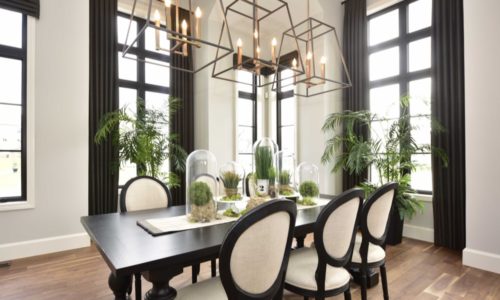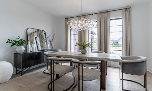 This open concept Bridlewood Dream Home floor plan joins multiple spaces into one for an entertainer’s dream. The home promotes an airy ambiance with clean lines, monochromatic natural tones, contrasting black accents and subtle architectural details.